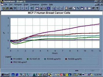 Tumor cell evaluation shows that utilizing the conductance pathway of metabolizing tumors within the closed system of the reaction cell can provide a convenient indicator of alterations in the cellular milieu (following exposure to anticancer drugs); and, that the Bactobridge H