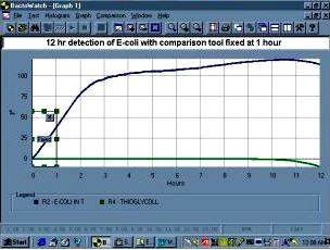 Test #1 E-coli detection within 1 hour and over a period of 3 hours |