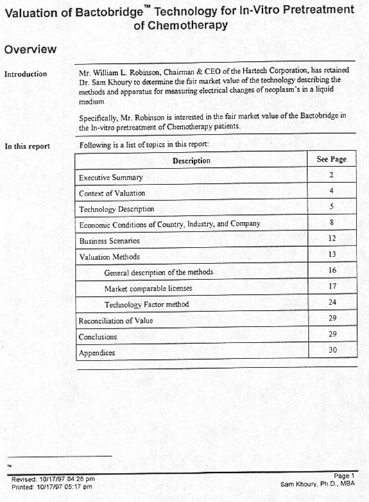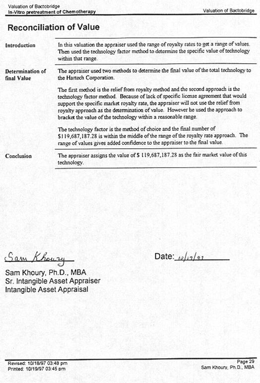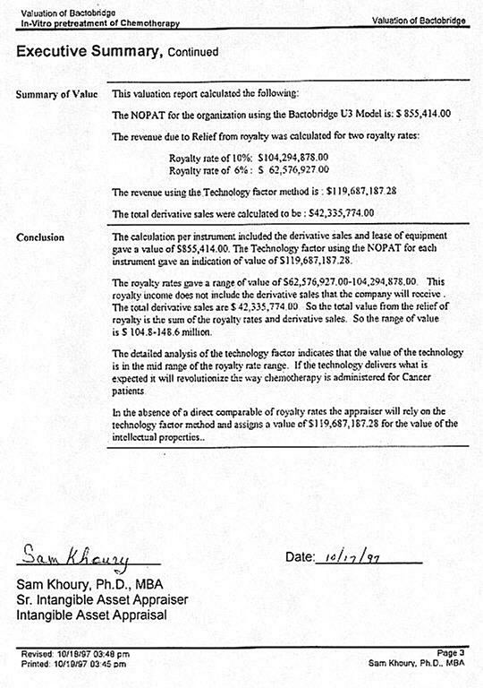 Sam Khoury worked as the Senior Intangible Asset Appraiser of The Dow Chemical Company. He has several years of valuation experience. In addition to valuation of patents, trade secrets and know-how, he developed training courses on technology assessment and valuation. He captured one of the valuation methodology on a software titled the "Technology Factor" approach. |